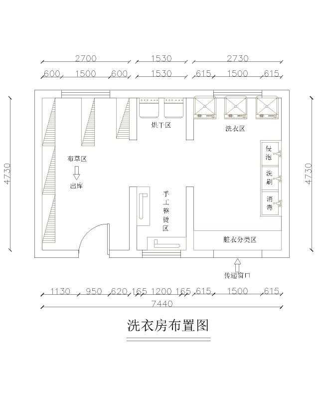 2、屋内布局:符合医疗洗衣基本流程设施设计