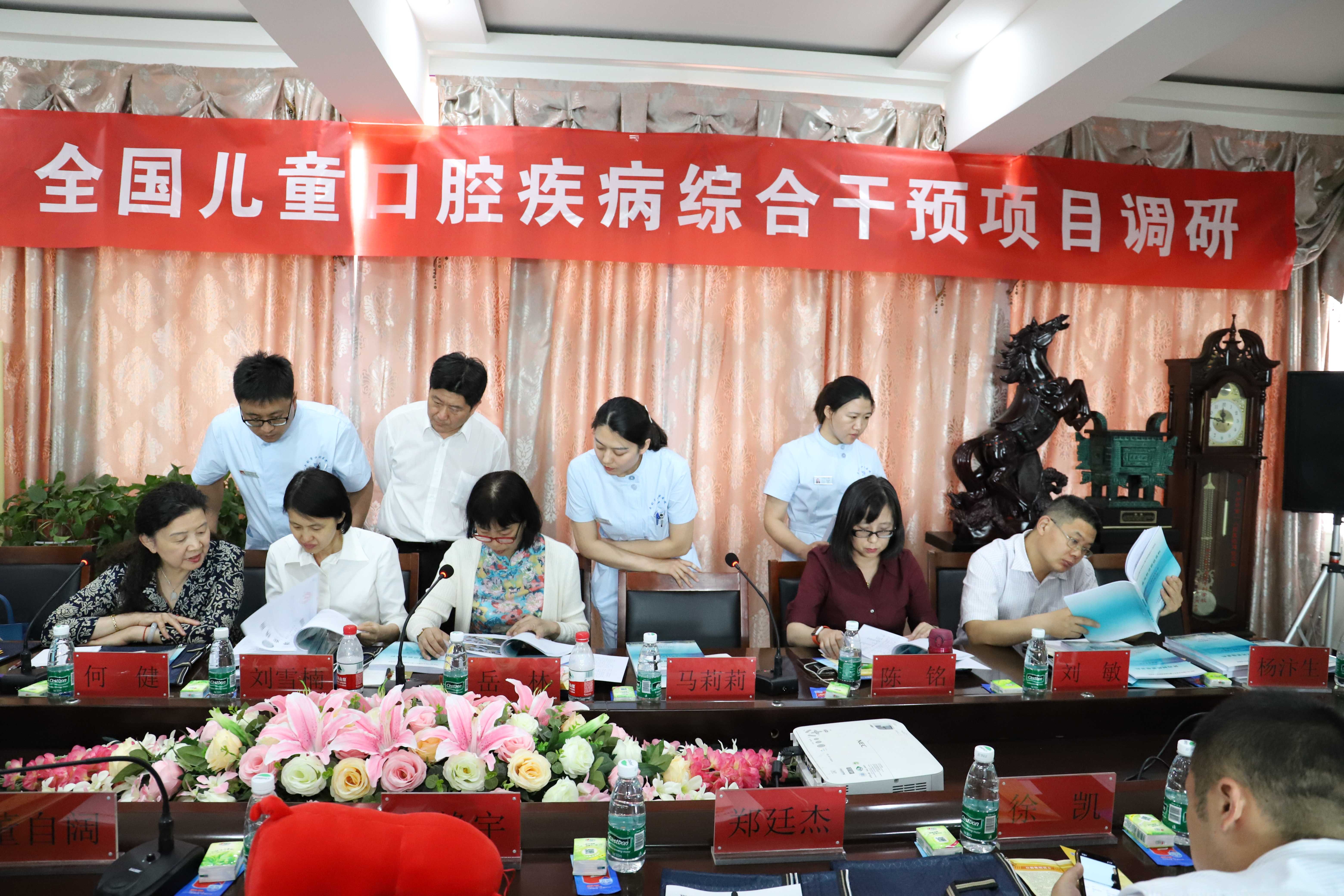 5月29日下午,由中国儿童口腔疾病综合干预项目办公室主任、中华口腔医学会秘书长岳林、副主任刘雪楠副研究员,成员中华口腔医学会常务副秘书长陈铭、刘敏副主任医师组成的国家项目专家组,在河南省项目办主任何健、副主任杨汴生及开封市项目办主任董自阔的陪同下,来我院调研2018年度中国儿童口腔疾病综合干预(窝沟封闭)项目工作。国家卫生健康委疾控局慢病处马莉莉主任全程随组参加了调研,开封市卫健委党组成员、开封市中心医院党委书记、院长刘静宇,开封市口腔医院书记、院长李彩霞也陪同调研。