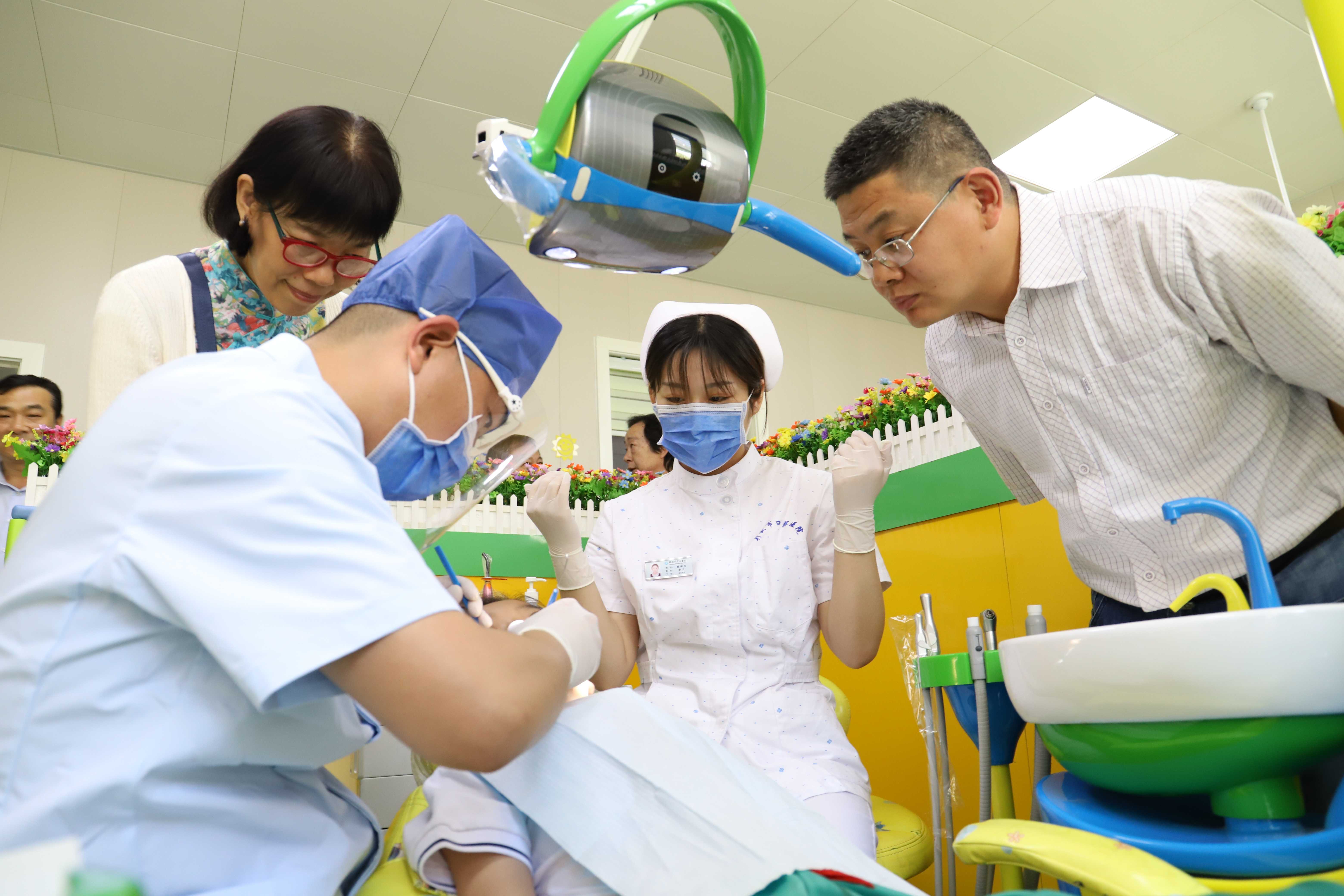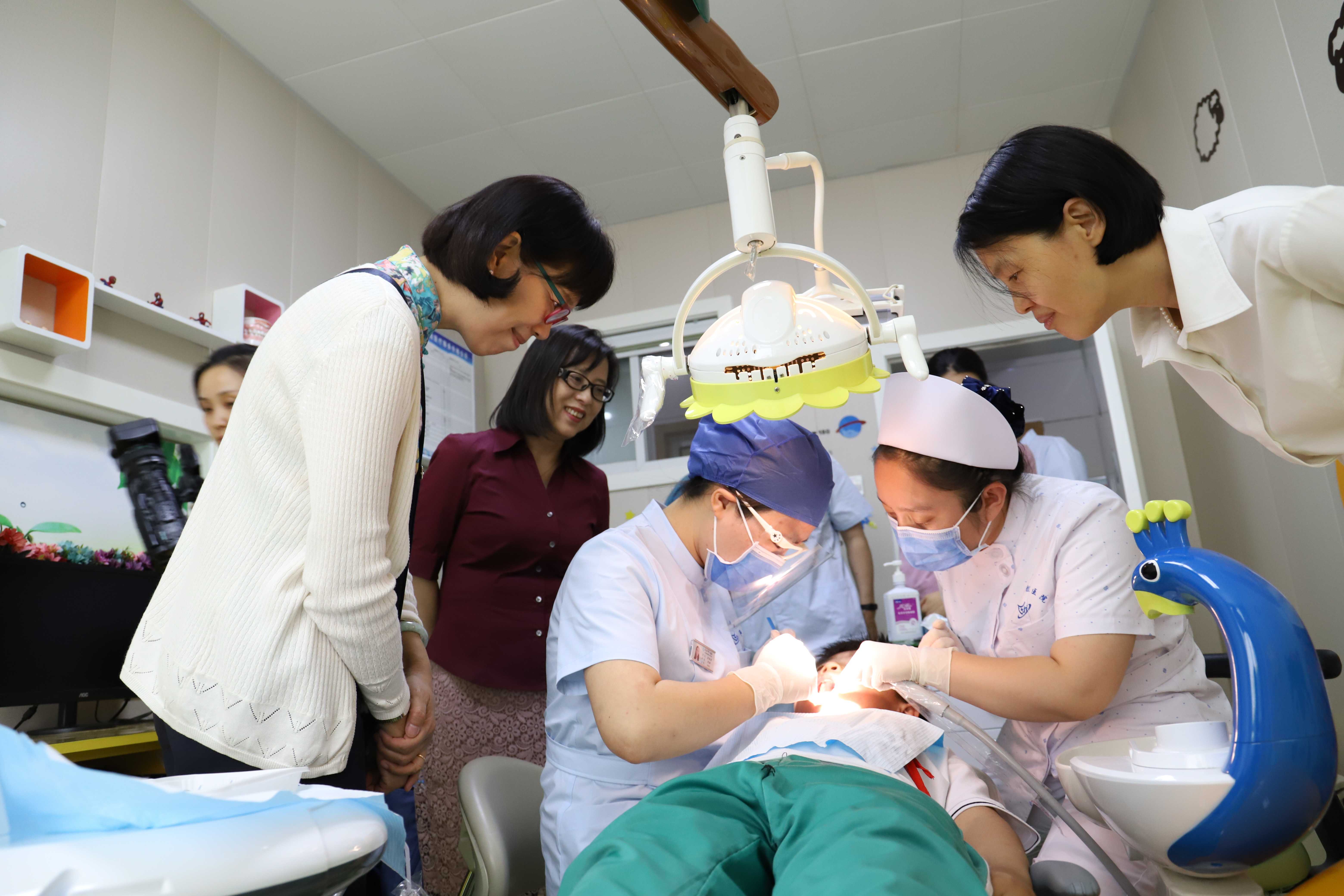 在开封市口腔医院,专家组听取了省级和开封市项目进展情况的汇报,查阅了儿童口腔疾病综合干预项目工作相关资料,现场对儿童牙病科的两名医师的窝沟封闭临床操作进行了评估。