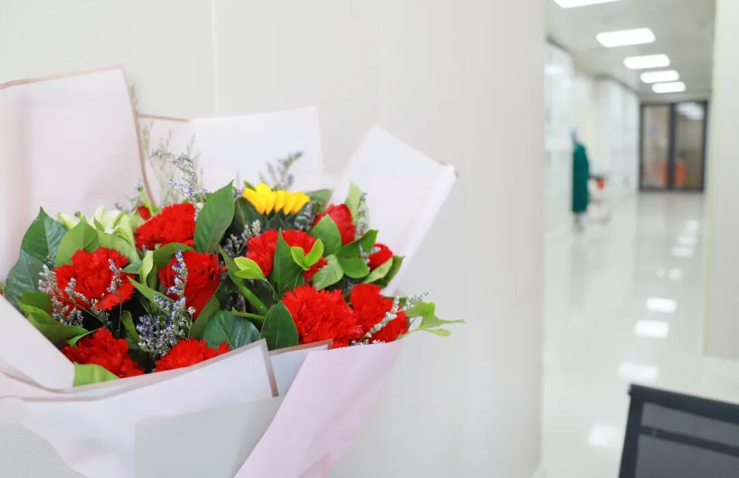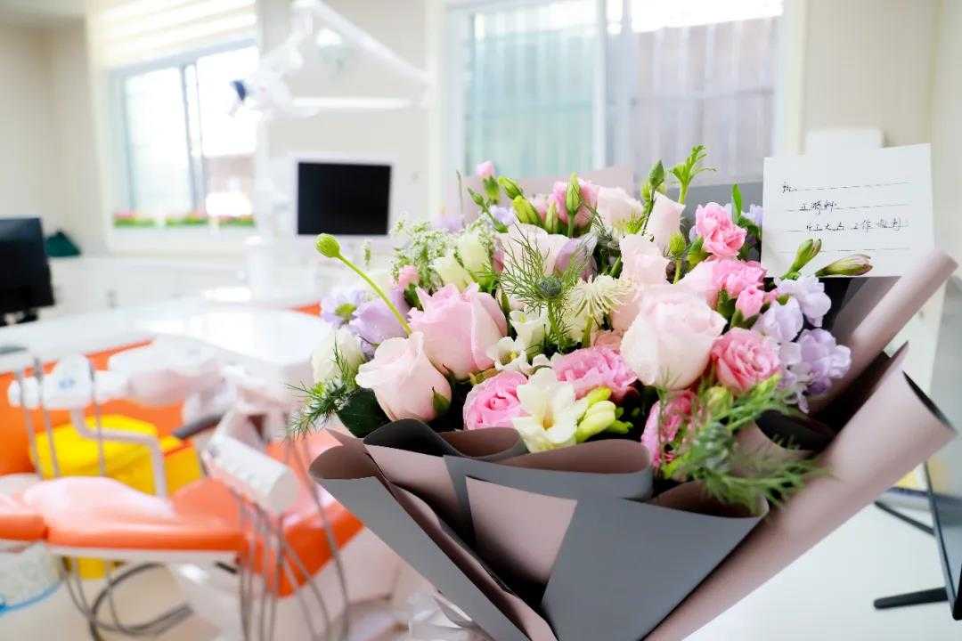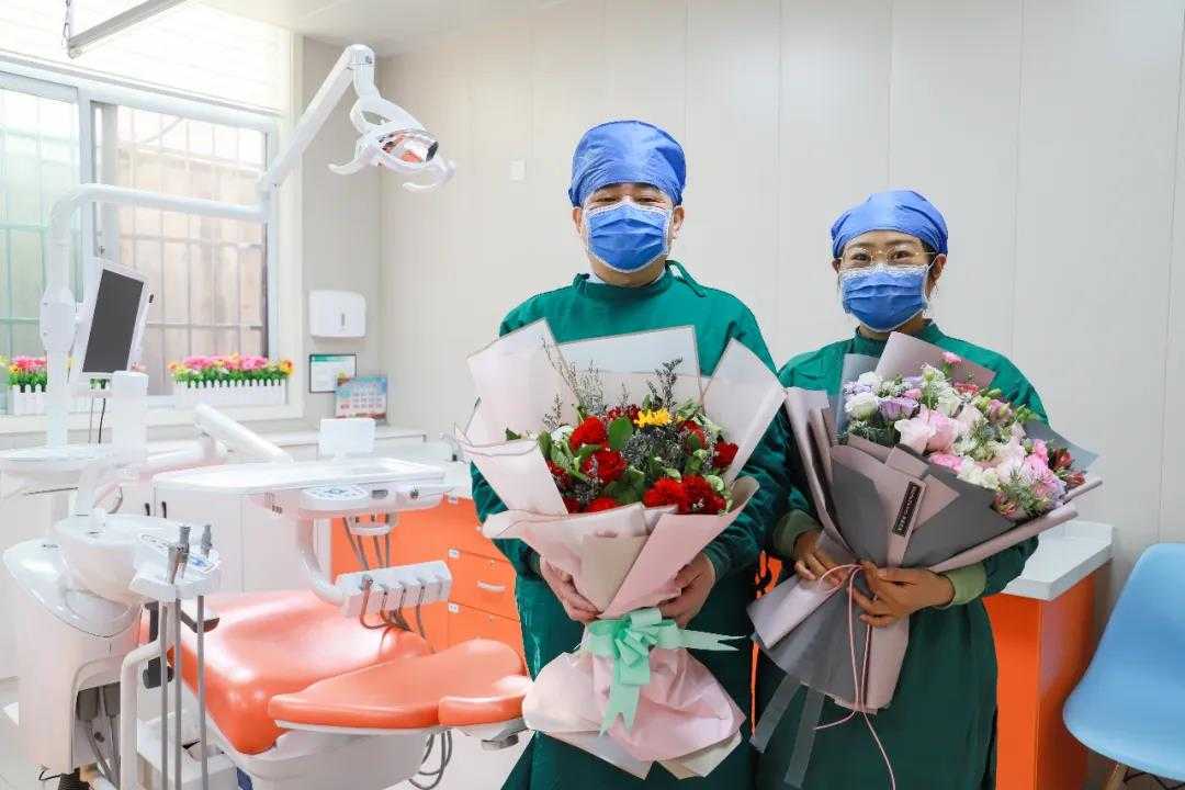 3月11日,开封市口腔医院正畸科恢复正常诊疗服务。开诊当天,正畸科的医护人员正在按部就班准备开诊,一位热心的开封市民手捧鲜花,来到了正畸科。我们一看原来是孙少平主任曾经接诊过的张先生,张先生说:“非常感谢主任和正畸科的全体医护人员,在去年我来就诊的时候给予细心和专业的治疗与护理,听说你们开诊了,我买了一束花,庆贺正畸科开诊!”大家非常感动,主任带领我们全科医护人员对张先生表示感谢,主任说“为广大开封市民的口腔健康保驾护航是我们的责任,我们将继续努力,做的更好!”
