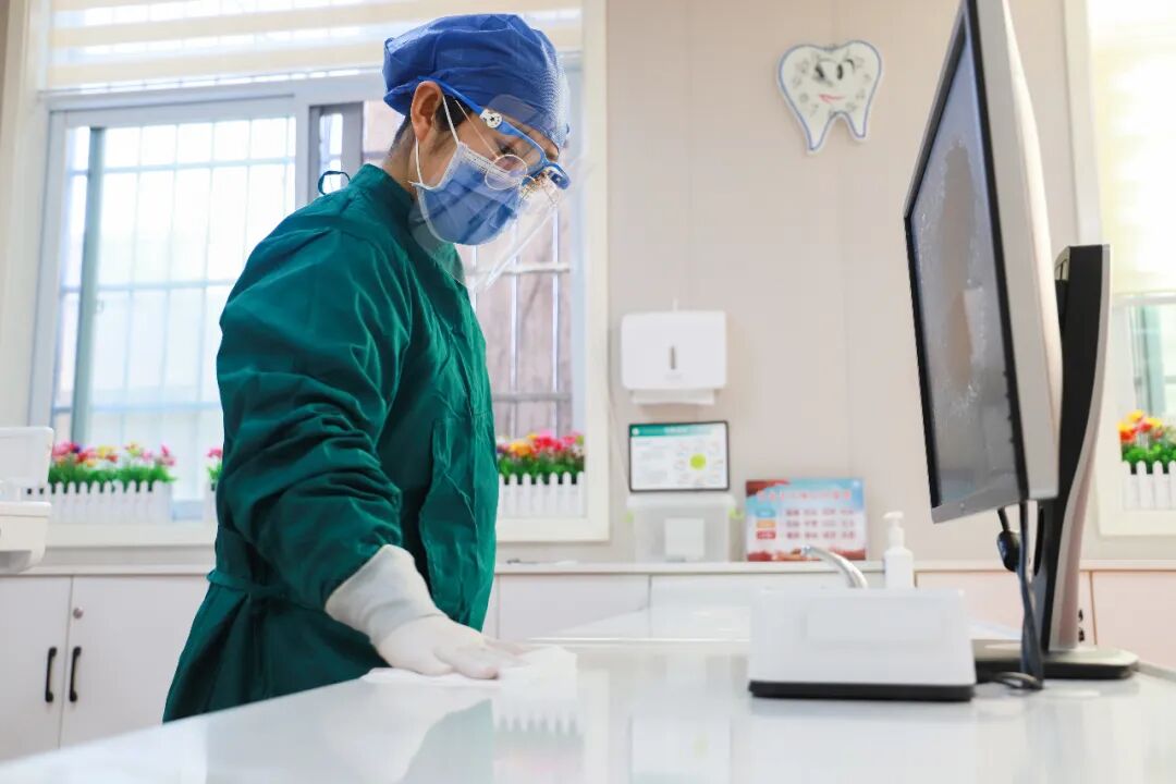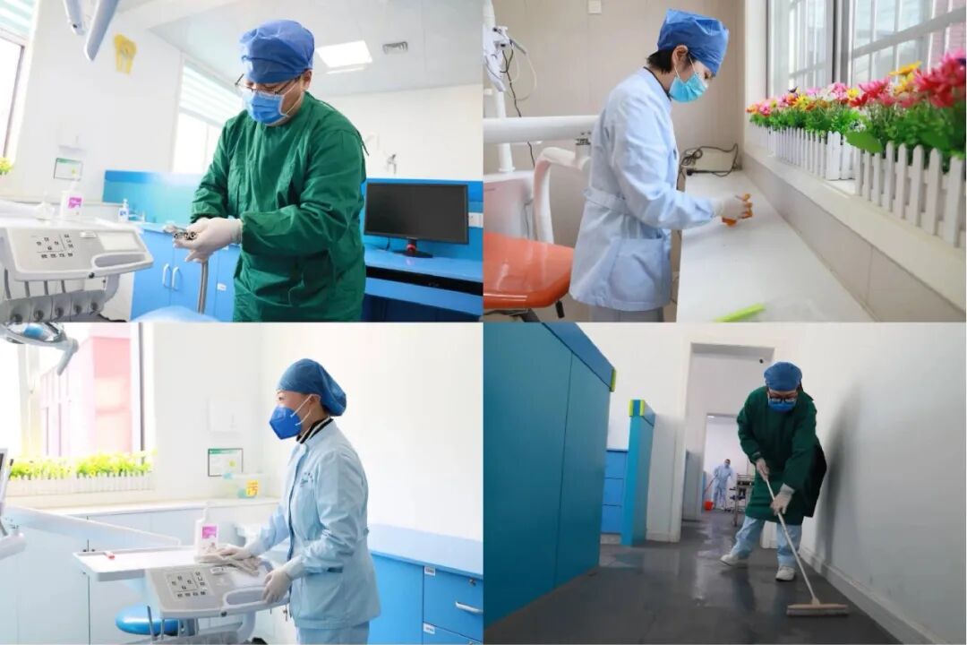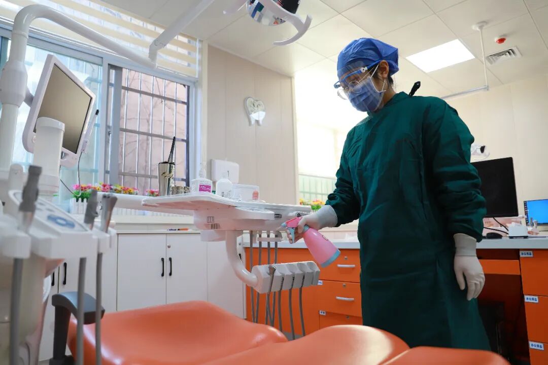 在开诊前一天,医院按照省、市卫健委的文件精神,在确保疫情防控工作稳定的情况下,要求全院各科室为恢复口腔医疗服务做好准备工作,正畸科的医护人员齐心协力对科室的环境、物体表面、综合治疗台管路等医疗设备进行了清洁和消毒。行后部门还对我科设备进行排查、保养、维修和消毒;还及时给科室沟通防控物品储备,把缺失的防控物资送到科室;控感部门深入到一线科室对控感工作进行评估和督导;医政部门到我科进行医疗质量监控和流行病学督导。其目的:在做好科学防控基础上,逐步、有序恢复我院的口腔医疗服务,以确保医疗安全。