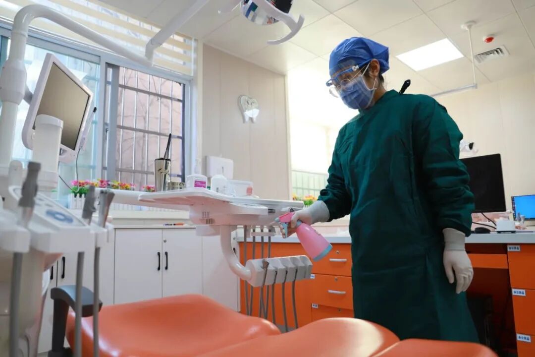 为迎接我院全面开诊工作,在院班子的工作部署下,由我院控感科对全院医、护、技及行政后勤人员,分期分批对各岗位人员,进行防控技能的培训及考核12场。在开诊前一天医院组织各科室对诊室牙科诊疗椅位水路、气路、诊室物表及环境进行了一系列的消杀工作,并细化患者就诊、转诊流程。