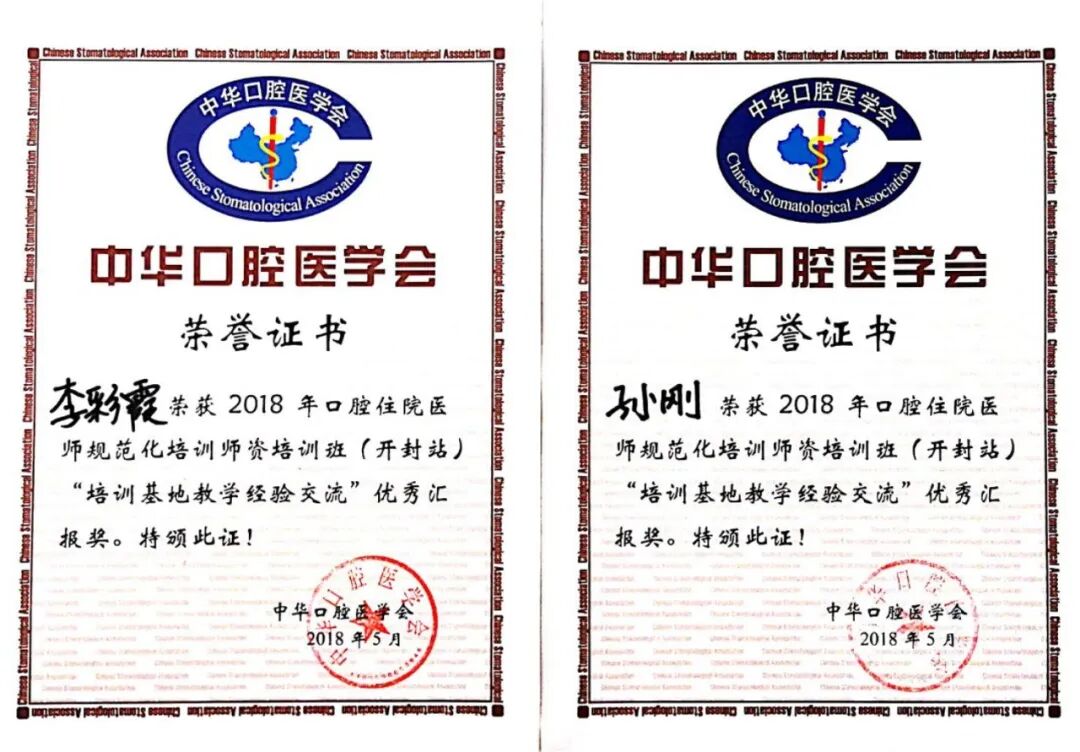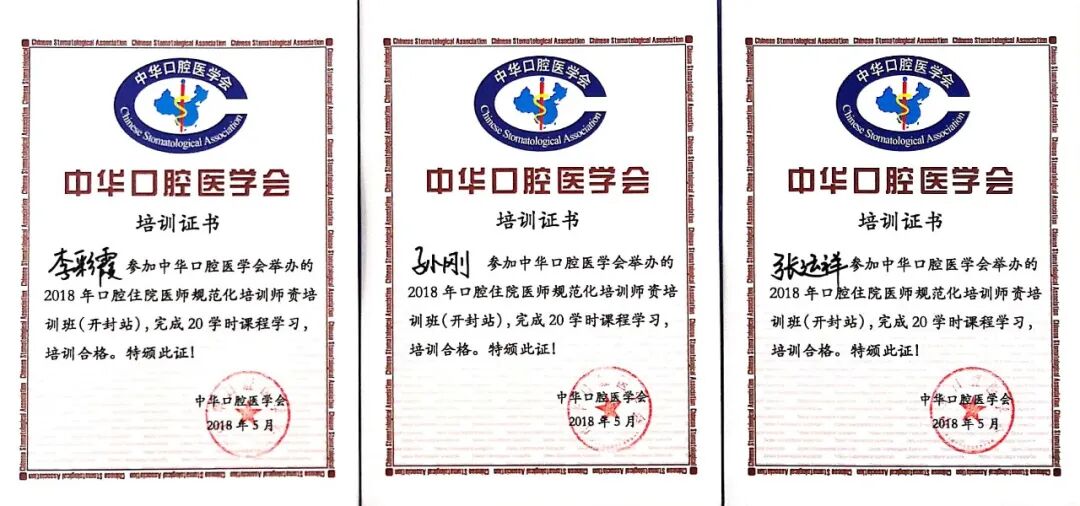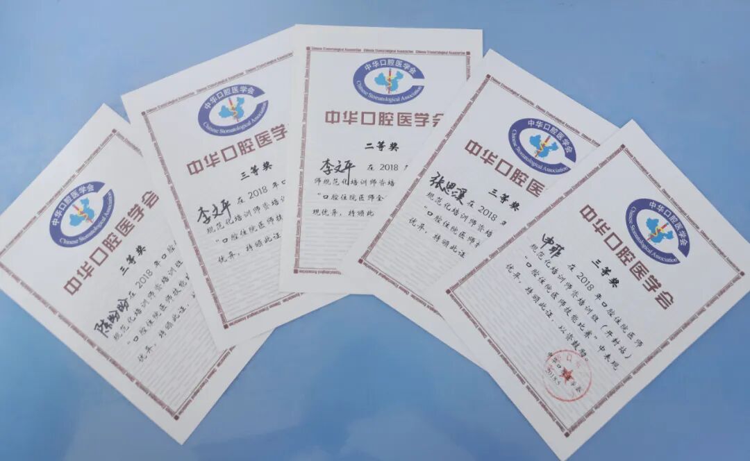 2018年5月31日至6月2日,在中华医学会举办的2018口腔住院医师规范化培训师资培训班,医院组织住培教师和住培学员共26人,参加了这次会议,全部培训合格。其中两名带教教师获得教学交流优秀奖,6名规培学员一人获得病历展示二等奖、四人获得技能大赛三等奖。