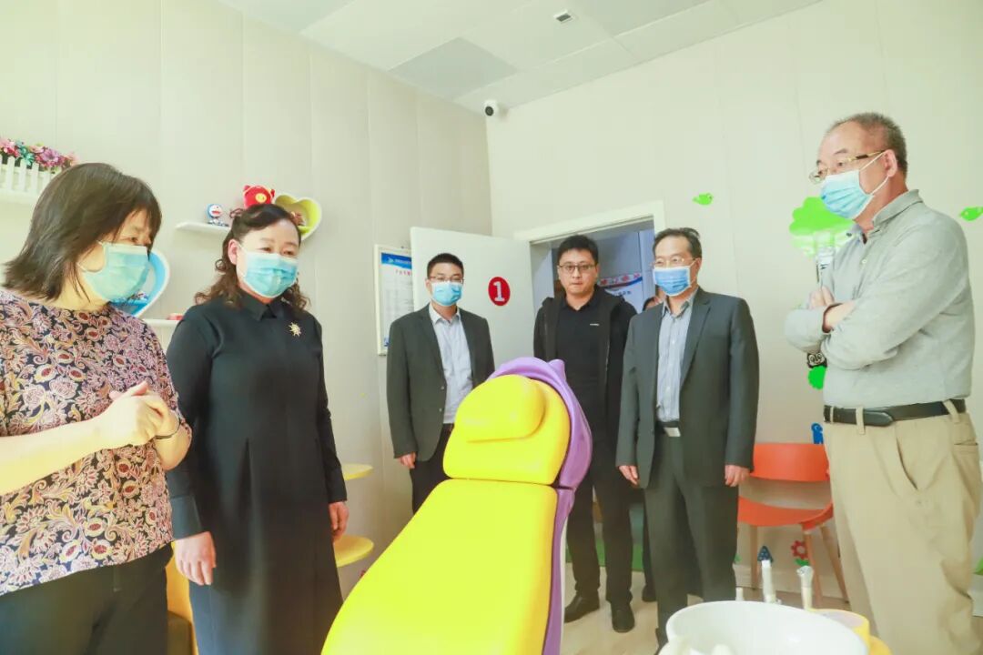 各位专家在李彩霞院长的陪同下参观了儿童口腔科、牙体牙髓病科、口腔修复科、口腔正畸科、知名专家工作室等科室。