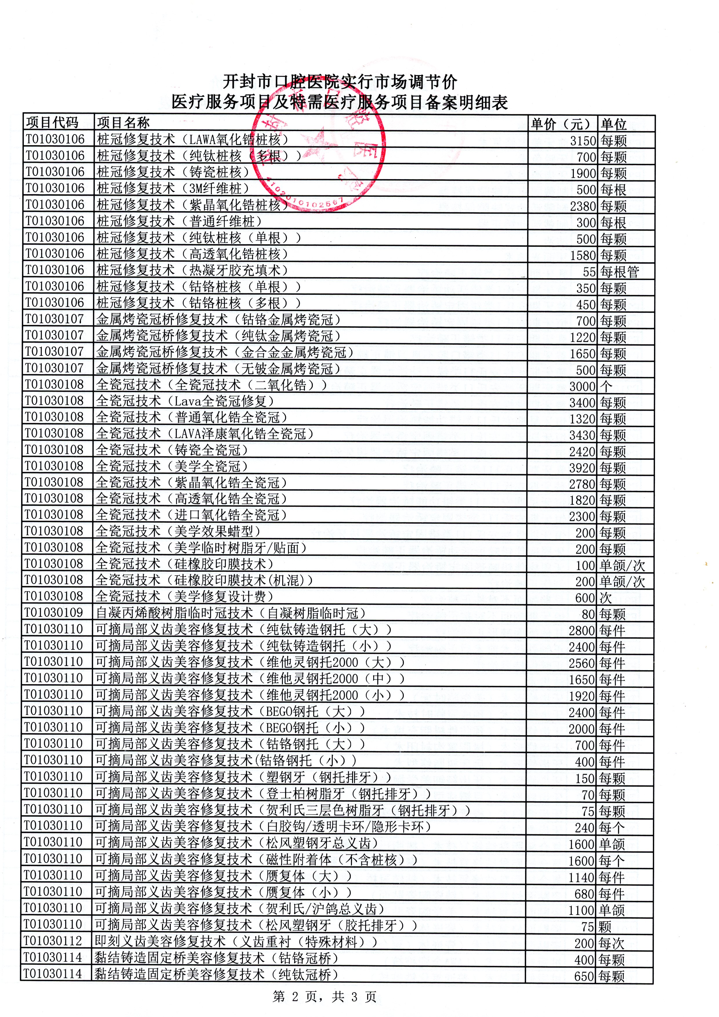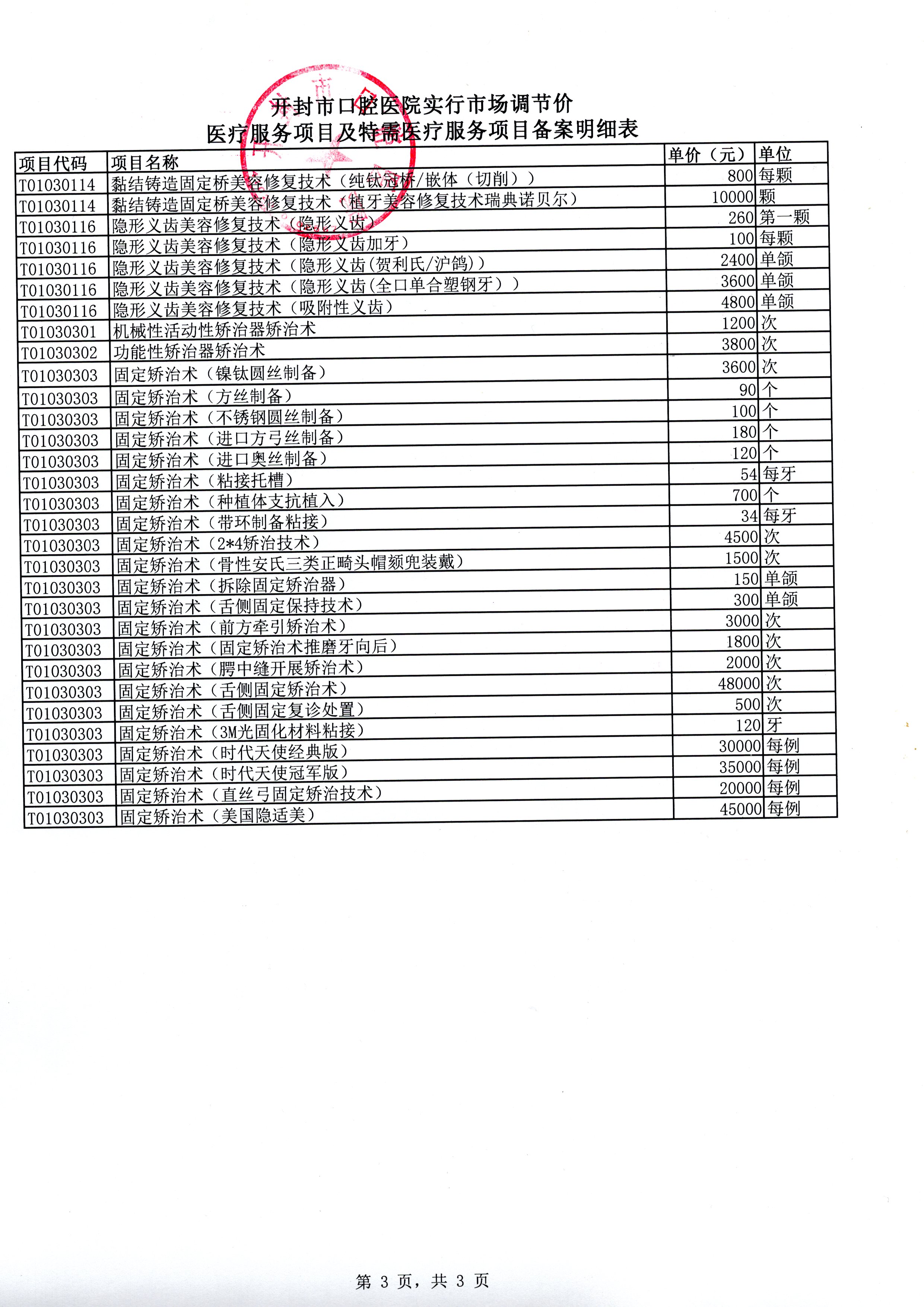 > 开封市口腔医院关于实行市场调节价医疗服务项目及特需医疗服务项目的备案报告