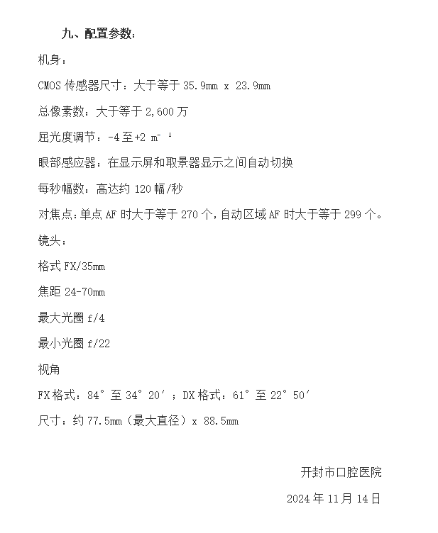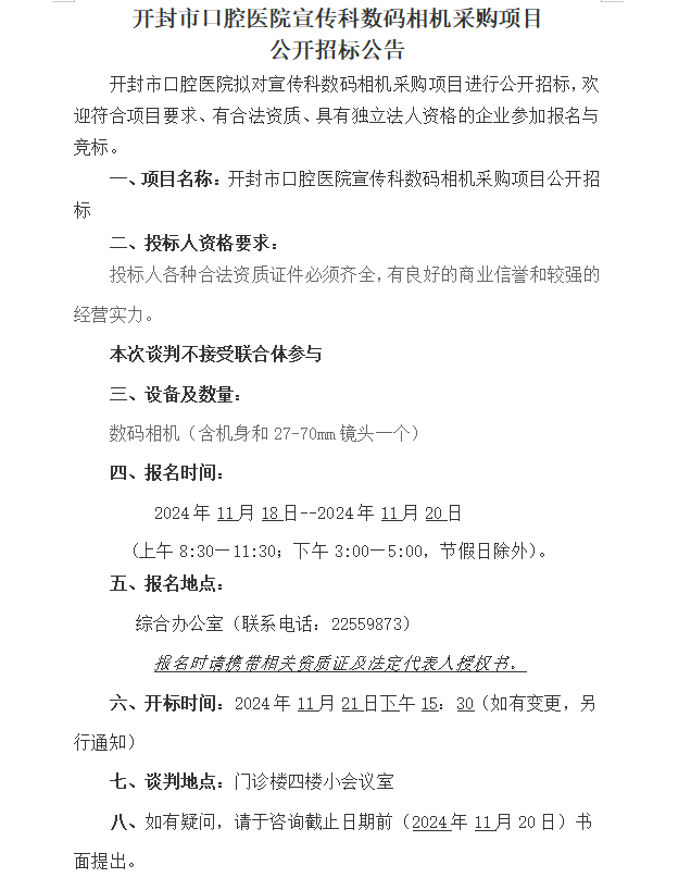 开封市口腔医院宣传科数码相机采购项目 公开招标公告