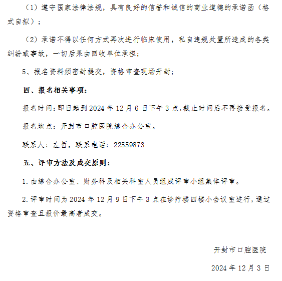 开封市口腔医院报废固定资产处置公告