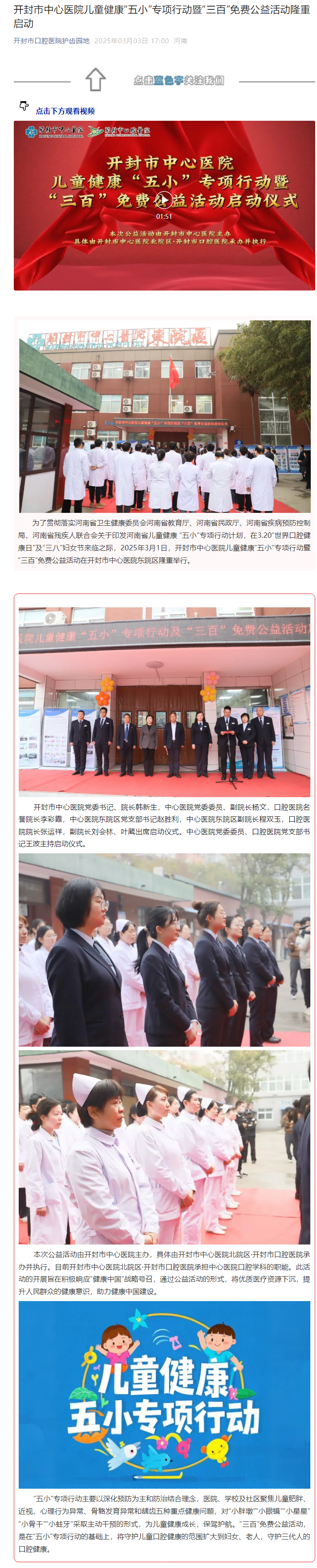 开封市中心医院儿童健康“五小”专项行动暨“三百”免费公益活动隆重启动