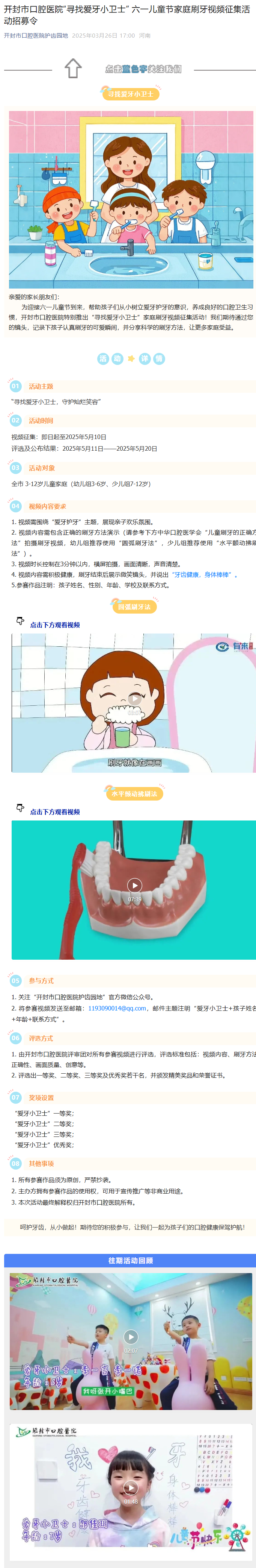 > 开封市口腔医院“寻找爱牙小卫士” 六一儿童节家庭刷牙视频征集活动招募令