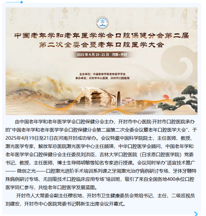 > 院士授课 大咖云集——中国老年学和老年医学学会口腔保健分会第二届第二次全委会暨老年口腔医学大会在汴顺利召开