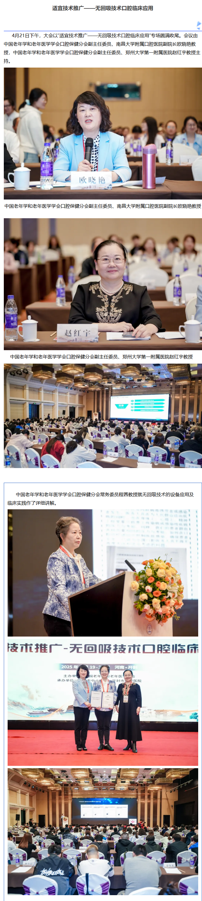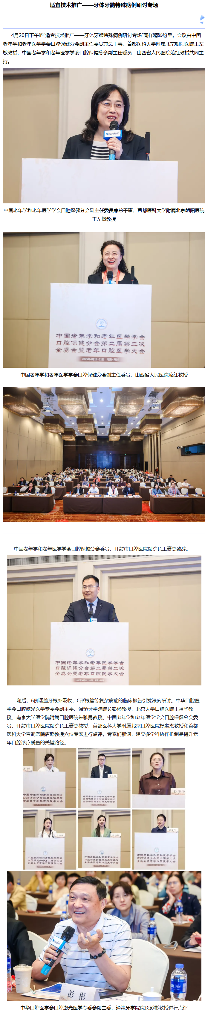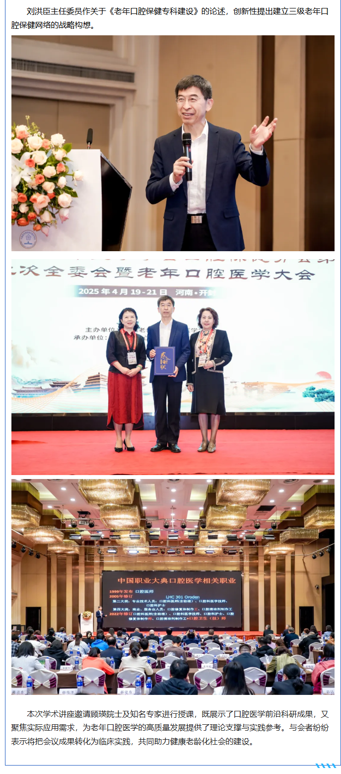 院士授课 大咖云集——中国老年学和老年医学学会口腔保健分会第二届第二次全委会暨老年口腔医学大会在汴顺利召开
