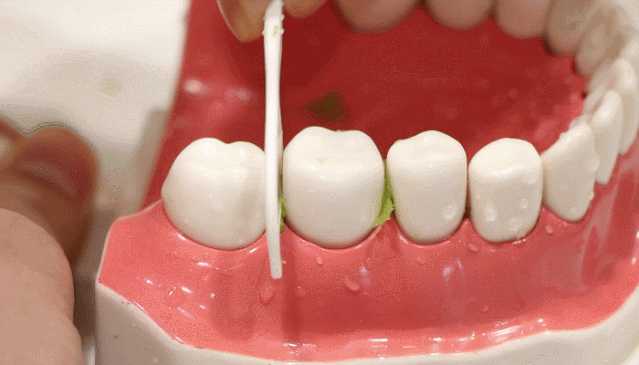 1. 拿一段长度大约为20cm的牙线,将两端分别缠绕在中指上,然后再用拇指和食指捏住牙线。 2. 将牙线放在两颗牙齿的缝隙中,前后拉锯慢慢滑入牙间隙。千万不能用蛮力直接将牙线压进牙间隙,这样做的话会损伤到柔软的牙龈。 3. 牙线进入牙间隙后分别向口内、口外压紧牙线,左右拉动牙线,轻柔地上下彻底清洁前、后牙齿的邻面。然后向咬合面把牙线提拉出来。重复以上步骤,直到清洁好每一个牙邻面。