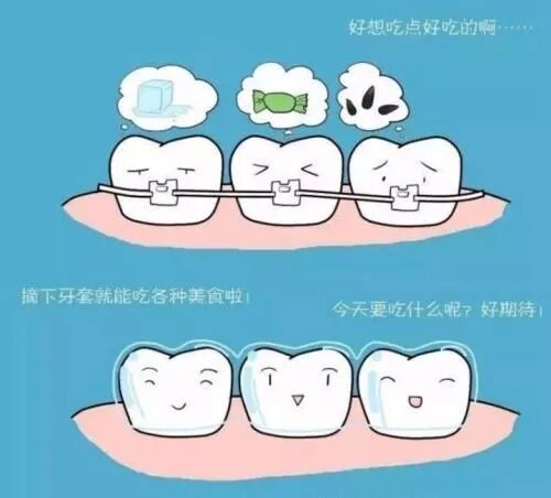 刚开始的一段时间,戴着矫治器吃东西会有些酸胀感哦。因为牙齿处于调整当中,会有一些脆弱。痛的时候你也可以这么想:当减肥了。