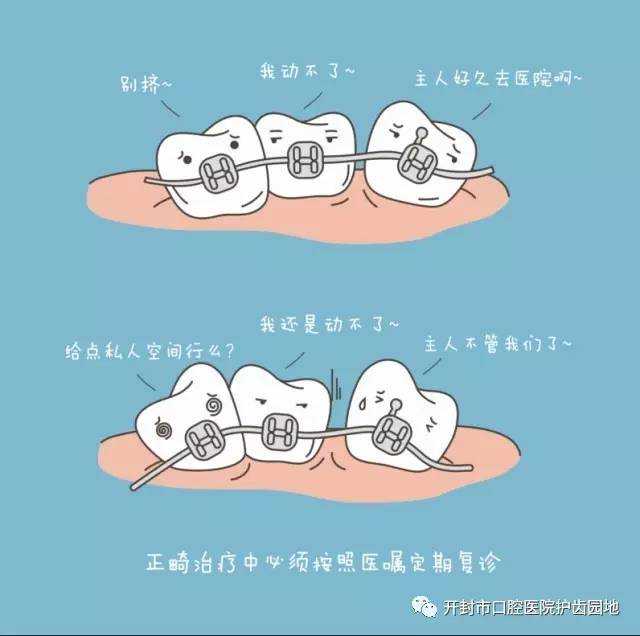 2、正畸治疗过程中必须按照医嘱定期复诊,简单的乳牙期的矫治时间一般在半年左右,恒牙期的全面治疗通常在两年左右。一般戴上固定矫治器后每4周复诊一次,活动矫治器每2至4周复诊一次。若不按时复诊或长期不复诊,牙齿将不会移动或出现异常变化,不能取得预期效果。